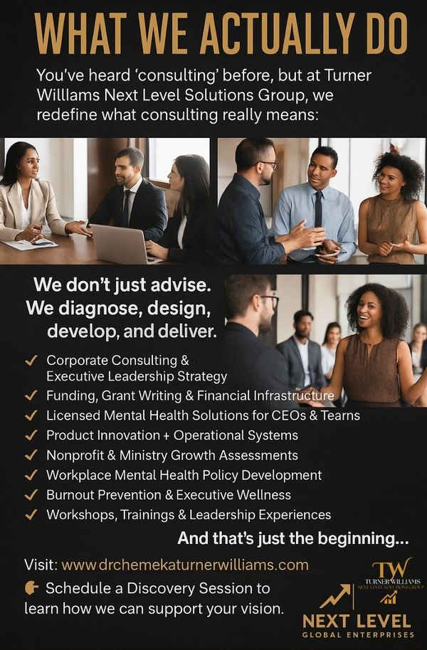 Dr. Chemeka Turner Williams is recognized as a prominent global consultant and trainer, specializing in empowering business entrepreneurs, business executives, and leaders across the globe.